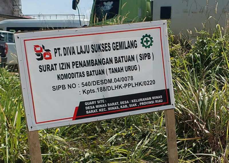 Plang tersebut mencantumkan nama perusahaan PT. Diva Laju Sukses Gemilang dengan izin penambangan batuan (SIPB). Lokasinya berada sekitar 100 meter dari Jalan Kilometer 37, Kampung Minas Barat. Namun, saat diperiksa di dua platform resmi ESDM, yaitu MODI (Minerba One Data Indonesia) dan Geoportal Minerba ESDM, nama perusahaan ini sama sekali tidak terdaftar. Hal ini menimbulkan dugaan kuat bahwa aktivitas galian ini tidak memiliki izin yang sah.
