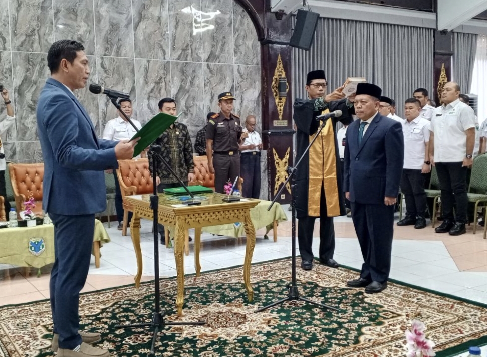 Dalam Pengambilan sumpah jabatan dan pelantikan penjabat (PJ) Sekretaris Daerah (Sekda) Kabupaten Batanghari tersebut berlangsung di ruang kaca Rumah Dinas Bupati pada Rabu (22/1).