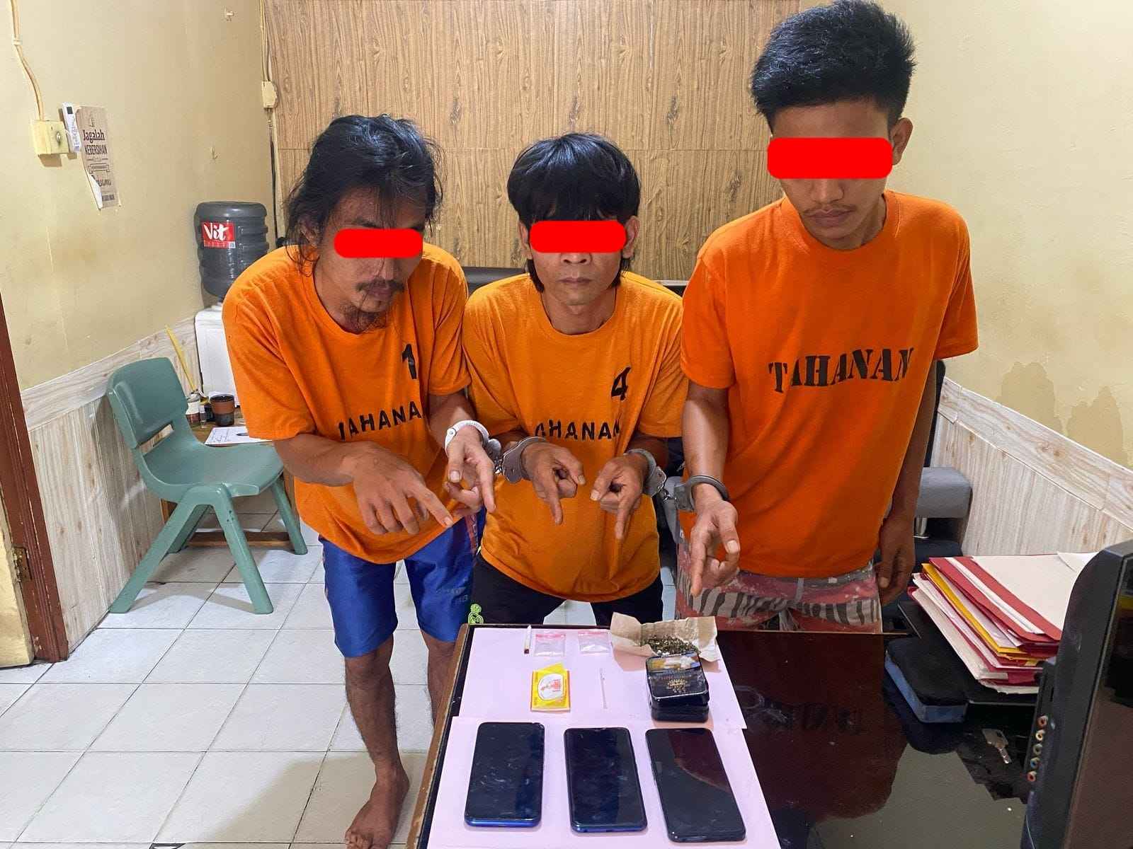 Ketiga pelaku AWH (22), GGT (38),JRS (26), diduga kuat merupakan bagian dari jaringan pengedar narkoba yang cukup meresahkan. Dari tangan para pelaku, polisi berhasil mengamankan sejumlah barang bukti berupa 2,09 gram Shabu dan 3,86 gram daun ganja kering siap edar.