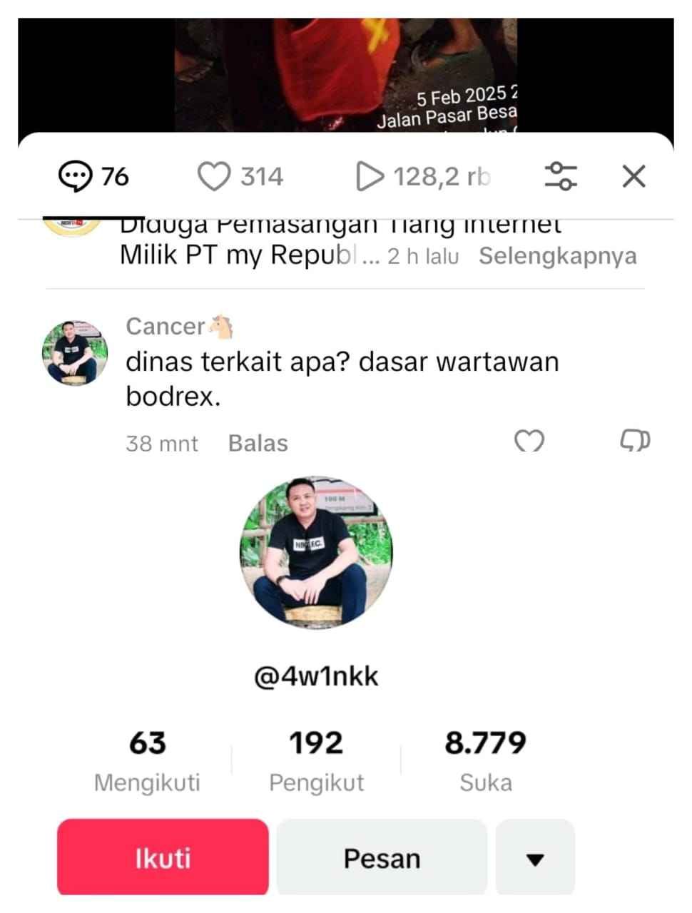 Surabaya (FI) – Baru-baru ini, jagat TikTok dihebohkan dengan komentar kontroversial dari akun @aw1nkk di salah satu unggahan milik @LiputanSurabaya25, Dalam komentarnya, @aw1nkk diduga melecehkan profesi wartawan dengan menyebut istilah “wartawan Bodrex”, yang kerap diasosiasikan secara negatif untuk meremehkan kredibilitas para jurnalis.