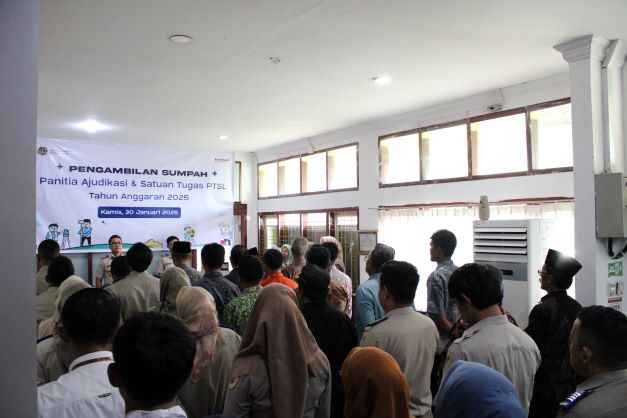 Lubuk Basung (FI) – Dalam upaya mempercepat pelaksanaan Pendaftaran Tanah Sistematis Lengkap (PTSL) tahun anggaran 2025, Kantor Pertanahan Kabupaten Agam menggelar prosesi pengambilan sumpah Panitia Ajudikasi dan Satuan Tugas (Satgas) PTSL pada Kamis, (30/1/2025).