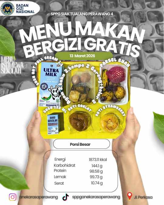 Sejak Jumat (13/3) hingga Selasa (17/3), sebanyak 1.222 paket Makanan Bergizi Gratis (MBG) program unggulan Presiden RI Prabowo Subianto—disalurkan kepada para pelajar di wilayah Kecamatan Tualang dengan standar menu yang jauh lebih mewah dari biasanya.