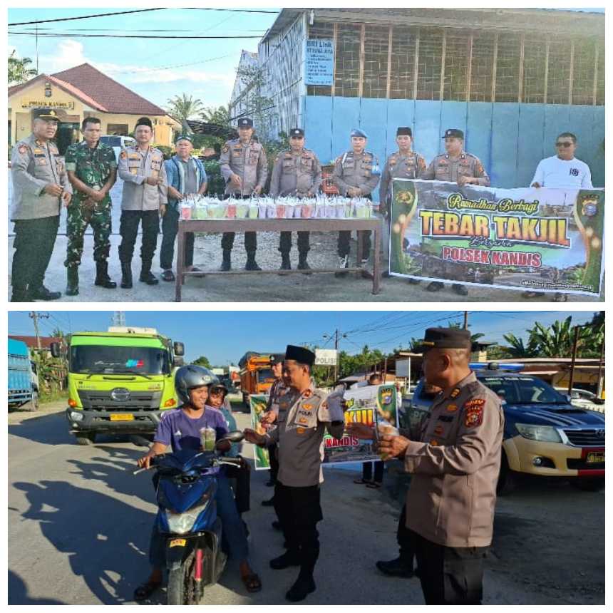 Dipimpin langsung oleh Kapolsek Kandis, Kompol H. Herman Pelani, S.H., M.H., jajaran Polsek Kandis menggelar aksi sosial bertajuk “Ramadhan Berbagi: Tebar Takjil” pada Kamis sore. Kegiatan ini menyasar para pengendara motor, sopir angkutan, hingga pejalan kaki yang melintas di depan Mako Polsek. Kamis (26/2)
