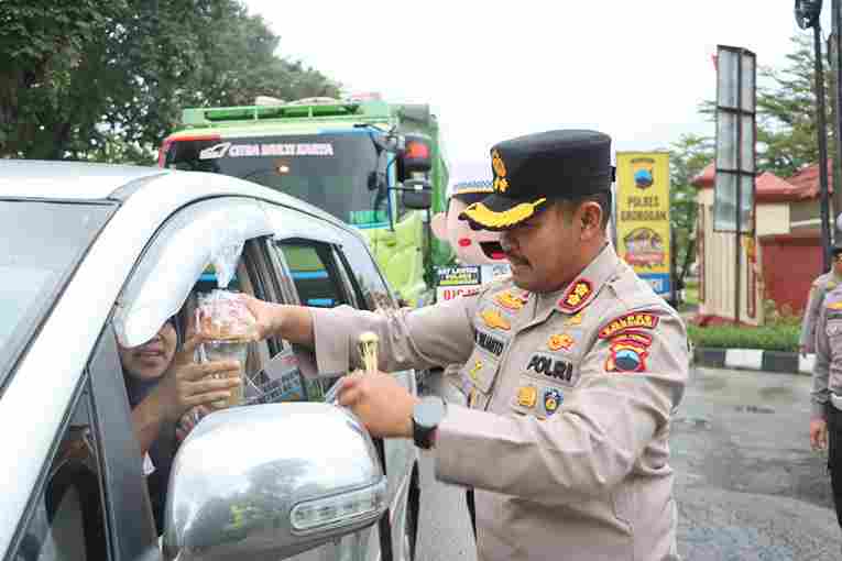 “Takjil ini utamanya kita bagikan pada para pengendara yang tertib berlalu lintas,” kata AKBP Ike Yulianto.