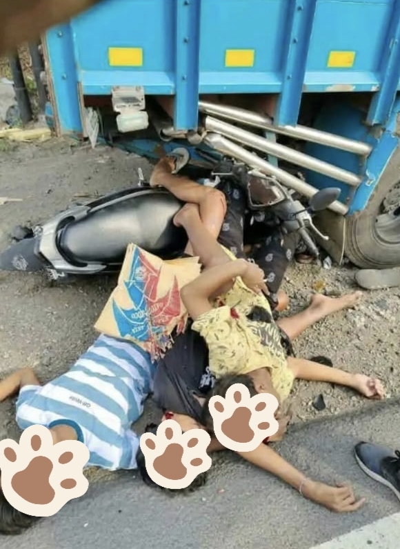 “Truknya tadi parkir di bahu jalan, sementara Yamaha Mio yang datang dari arah timur itu berboncengan tiga, agak ngebut,” ujar AKP Inggit.